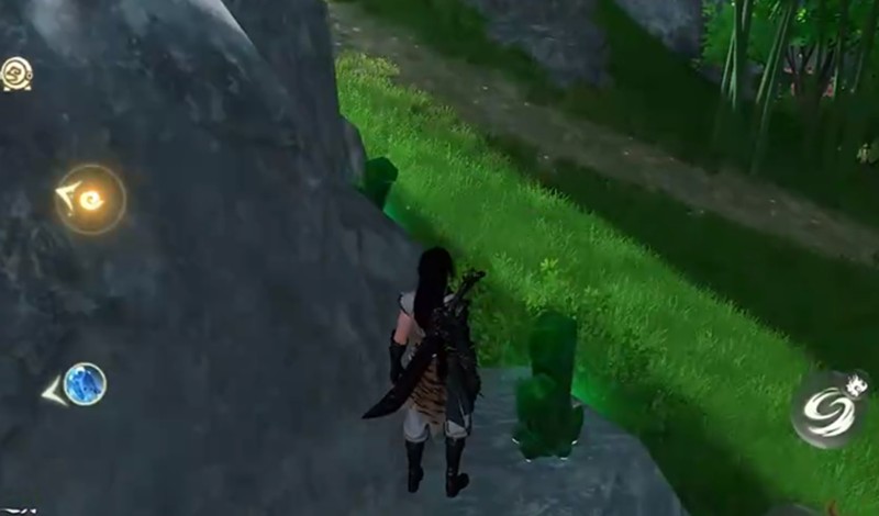 收集完传送点附近的矿石后,继续向西前进。在西面的岩石上还能找到两处盈风矿。接着从山坡跳下,在草坪区域也能发现两处散发着绿光的矿石。这三个区域总共能获得6个盈风矿,这些矿石每天都会刷新。