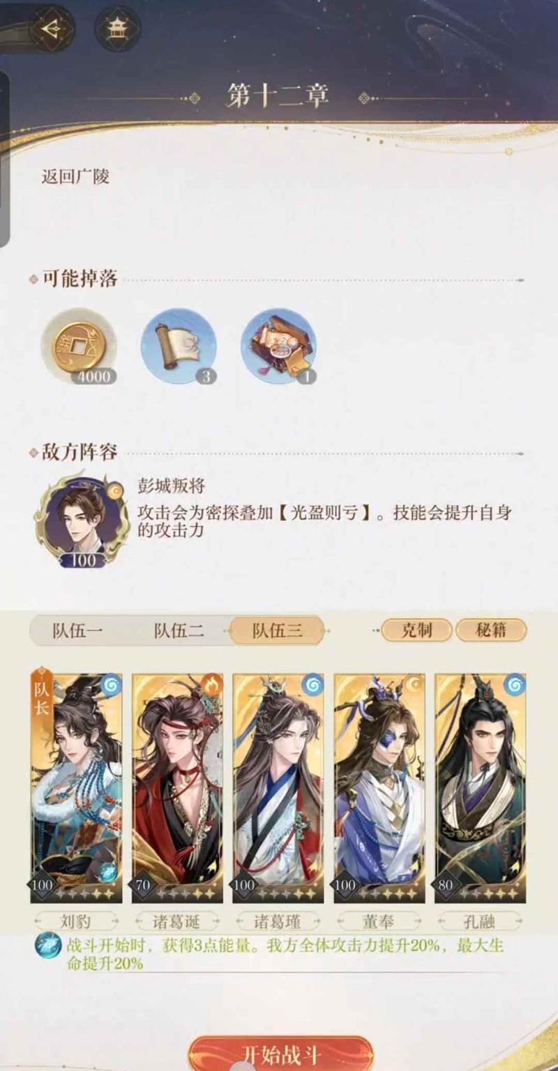 以上就是如鸢主线十二章攻略(下)-丹阳军官彭城叛将怎么打攻略的全部内容了,更多游戏资讯,攻略内容敬请关注切游网,您的支持是我们努力的动力!