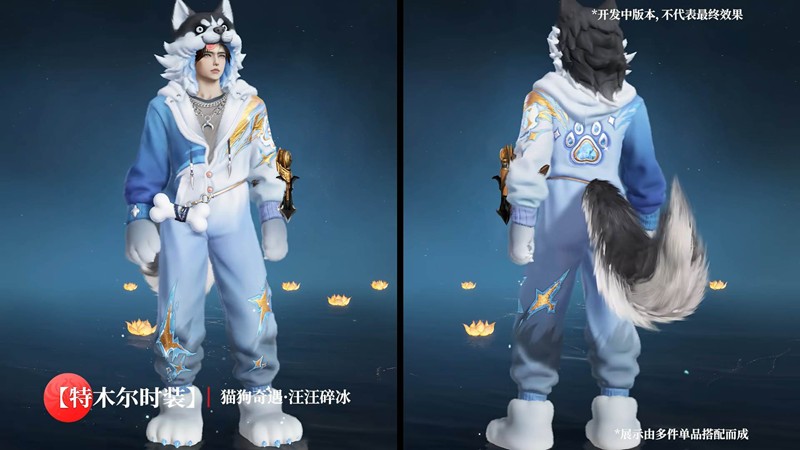 特木尔的新外观以“汪汪碎冰”为主题,设计灵感来源于活泼可爱的狗狗。这款时装将特木尔打造成一位拥有冰爽气质的角色,外观细节充满了夏日的清凉感,让人一见倾心。