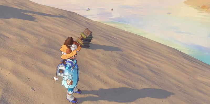 记忆石的捕捉地点位于上体地图的海边遗迹区域,全天候开放,没有时间限制。进入该区域后,需要寻找散落在场景中的三处隐藏书堆。从入口向左步行约二十步可发现第一处,绕过中央巨石后能找到第二处,第三处则分布在悬崖边缘附近。这些书堆外观较为显眼,其中一处呈现倾斜堆放的状态。当靠近并互动其中某一特定书堆时,会直接触发与记忆石的战斗。