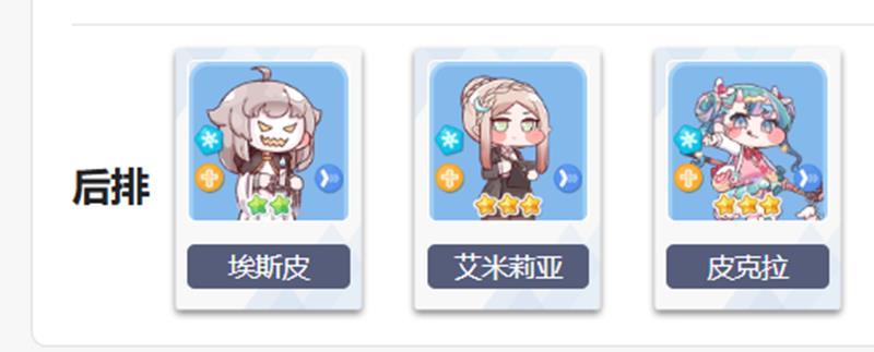 后排由埃斯皮和艾米莉亚组成,主要承担辅助与支援职能。埃斯皮对冰属性角色有增伤效果,同时具备治疗能力,能有效维持队伍战斗力。艾米莉亚则在控场和减益方面发挥作用,与前排的控制技能形成衔接。两人协同作战时,可确保队伍在控制、治疗和输出之间保持平衡。整体阵容强调控场衔接与持续压制,适合应对高爆发或召唤流敌人。遇到敌方召唤单位时,可利用群体技能快速清场,搭配具备净化能力的角色清除负面状态,进一步提升容错率。