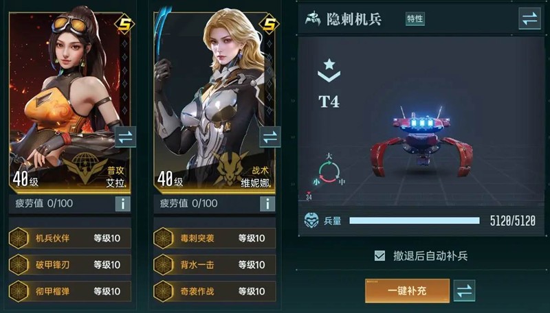 艾拉适合与维妮娜搭配,二者都拥有针对隐刺机兵提升伤害的独特能力,相互配合下,可以极大提升隐刺机兵的输出上限。破甲效果会进一步提升背击伤害,而维妮娜的命中提升也会反哺普攻伤害,结合恢复耐久的机制,在持久战中表现会尤为亮眼。