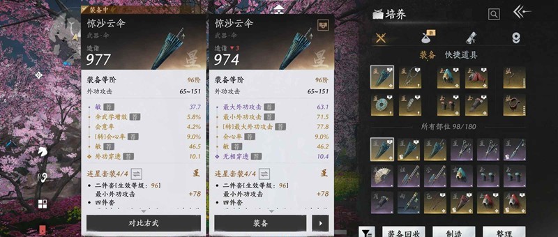 左边四件:双大外+会心+劲/敏,武器伞增伤