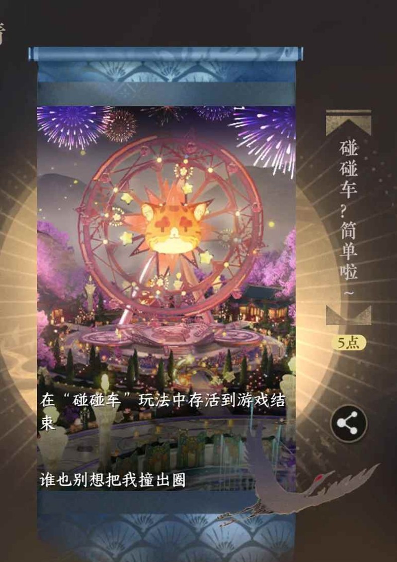 逆水寒游戏玩家扮演一名自在门的弟子,为了调查屠村疑案的真相、寻求破解毒蛊的方法不断在江湖中进行冒险。那么游戏中五个碰碰车成就怎么获得呢?小编为你准备了一份攻略,一起来看看吧~