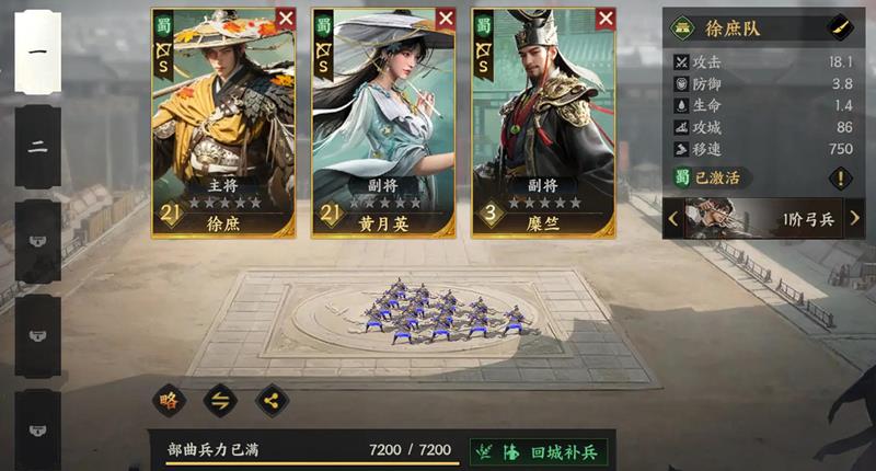 在兵种阵容搭配方面,三国群英传策定九州的开荒效率与部队配置密切相关。推荐以弓兵队为主力输出,远程攻击稳定且适合打地,搭配盾兵队承担伤害,形成攻守兼备的组合。弓兵队可使用王平或徐庶(新手首抽)搭配黄月英,若未获得王平,法正也可作为过渡使用。盾兵队推荐关兴与张苞,再辅以一名辅助武将。两支队伍建议同步培养,避免只练单一部队导致推进效率低下。