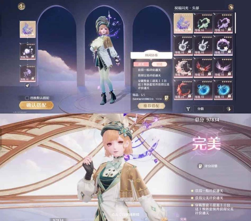 这一关要求一整套甜美宫廷标签套装焕新,符合标签的衣服如图所示总共两套,歌剧套和小动物套。