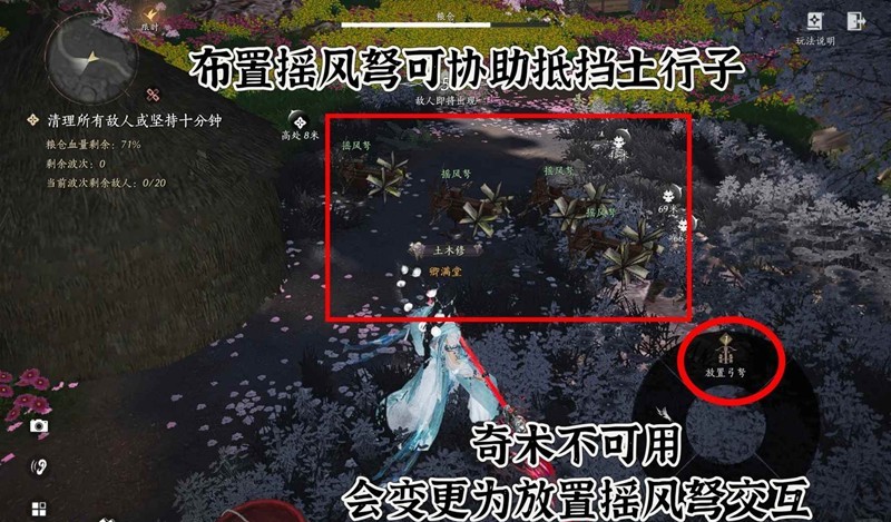 布置摇风考可协助抵挡士行子,奇未不可用会变更为放置摇风考交互