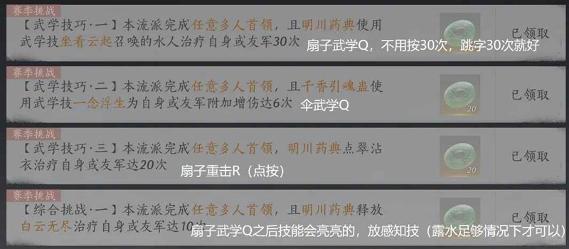 1.奶阵治疗30次,2.大抬10次,3.重击20次,伞q6次