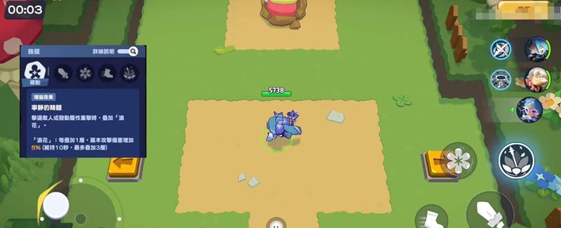 冷却时间为15秒,释放后生成相当于自身最大生命值10%的护盾,并进入浪花舞潮状态,攻击范围扩大且移速提升30%。被动效果掀起的波浪可延长增益状态4秒,同时暴击强度提高50%。此技能兼具生存与输出增幅功能,在面对高频率刷新的小怪关卡时能快速清场,对抗BOSS时也能通过破甲效果弥补基础攻击力仅有598的短板。