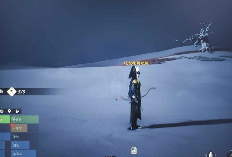 (打人机开局凌云踏上小平台,等风沙吹过小牛出现,先从A方向下去的小牛群点暗杀,点一下后立刻凌云踏回小平台,紧接着面对B处的小牛群暗杀后拔腿就跑,立刻回到高处)