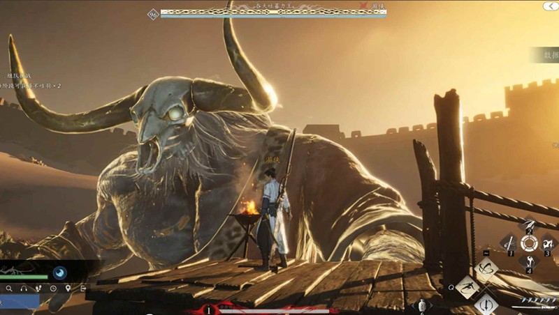 (大牛变小集火打,承伤把怪拉到小平台附近A处,出沙啸直接凌云踏上小平台不受伤害)
