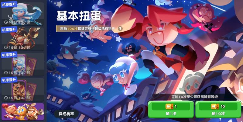 特别饼干扭蛋为限定UP池,是获取高人气或强度顶尖角色的主要渠道。该卡池中超稀有角色的出现概率由基础1%提升至3%,部分活动池还设有10抽保底机制,但需要消耗专用抽卡券或钻石进行抽取。需要注意的是,并非所有特别扭蛋都有保底,且该池与常驻池的抽卡进度不互通,一旦抽错可能导致后续无法在限定池内达成保底目标,因此每次进入卡池界面前都应仔细确认当前池子类型及保底进度。