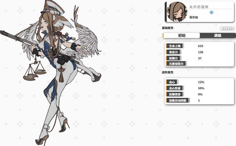 菲尔佳的核心天赋名为理解第一,该效果在她进行普通攻击第三段命中敌人时触发,可获得两层必杀技增益。若通过连携追击方式出手,则直接叠加两层增益效果。她的普通攻击为枪斗术,共三段连续打击,每次命中都能附加冰元素侵染状态。重击技能宽容分发可在旋转过程中向周围发射6枚子弹,每消耗一层天赋增益,额外增加一枚子弹。当积攒满6层增益后,重击将被进一步强化,子弹命中后还能为菲尔佳自身提供持续6秒的冰元素伤害提升。