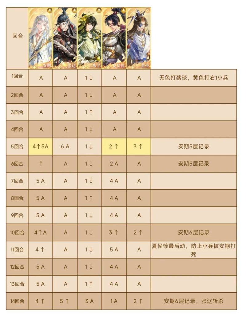 1. 让安期攻击最高(如果张辽练度很高、攻击远高于安期,那么可以改成张辽攻击最高、站3号位,夏侯惇带临机而变),等待安期身上5层或6层记录时(此时蔡琰没有额外抗性)去给蔡琰打出高伤