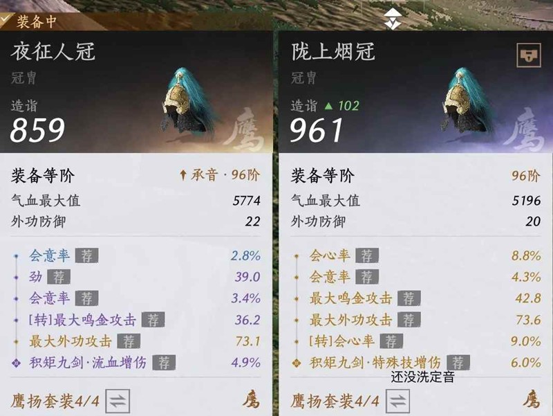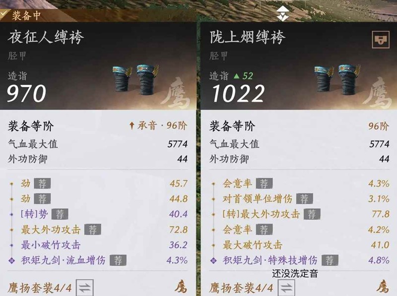 左边四件:剑增+双大外+劲/势+会意会心最佳定音外功穿透,不要无相只能过渡衣服头盔:双会/三会+精准+最大外+劲势最佳护腕绑腿:首领增伤+双劲+最大外+会意会心+势最佳,跟左边四件差不多,防具定音全部流血增伤。