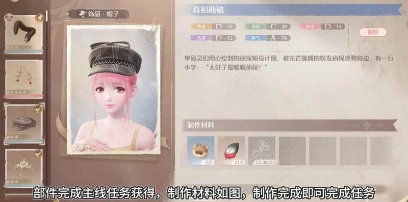 部件完成主线任务获得,制作材料如图,制作完成即可完成任务