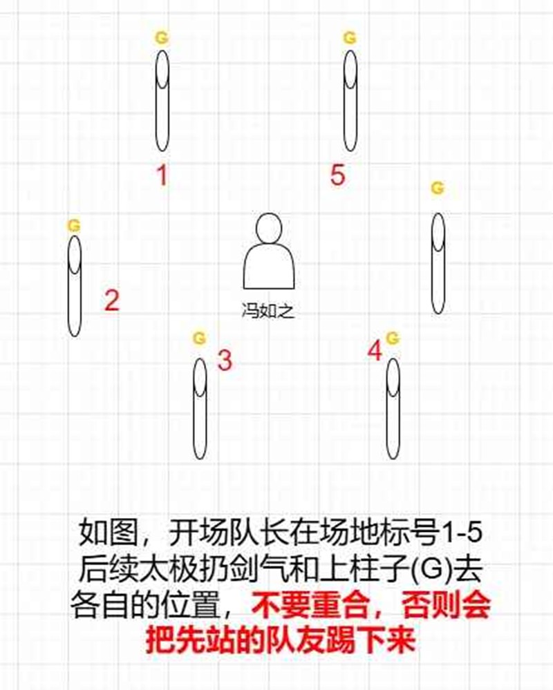 7、 随后boss上天,5人立刻站在对应柱子下的黄圈中按太极,准心瞄准boss,扔回剑气。