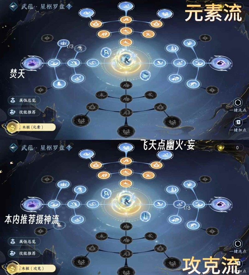 2-焚天点法:上天点幽火增强,反之荡骨增强