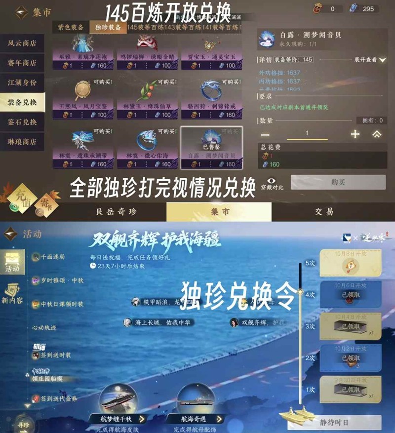 -活动可免费兑换独珍令牌,兑换视毕业缺少独珍为优先项