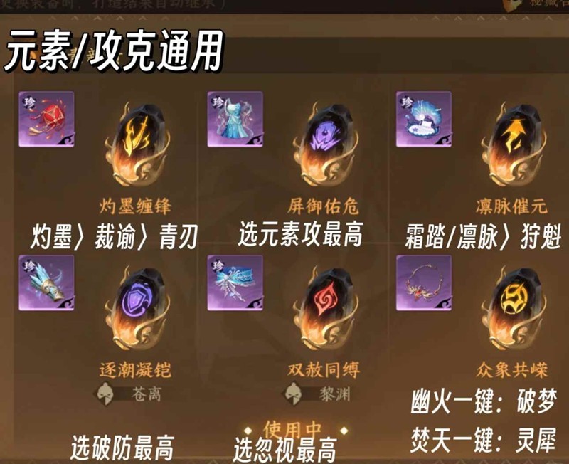 3-焚天QTE优先金灵犀打造,幽火QTE默认金破梦打造