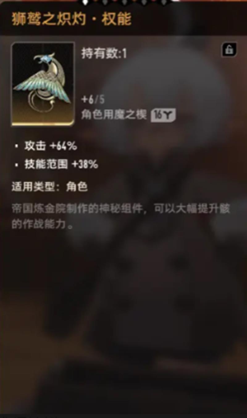 狮鹫之炽灼权能是二重螺旋狮鹭体系的核心输出组件之一。该组件可提升64%的基础攻击力,并扩大38%的技能作用范围。对于依赖远程技能输出的角色而言,这项加成尤为关键。攻击范围的扩展使得角色能在更安全的位置进行输出,尤其在面对群怪或高机动性敌人时优势明显。配合原本就具备广域打击能力的职业,如法师职业或射手类角色,清图效率将大幅提升。在实际战斗中,开启该组件后单次技能伤害常可突破一万点以上,显著改善输出体验。