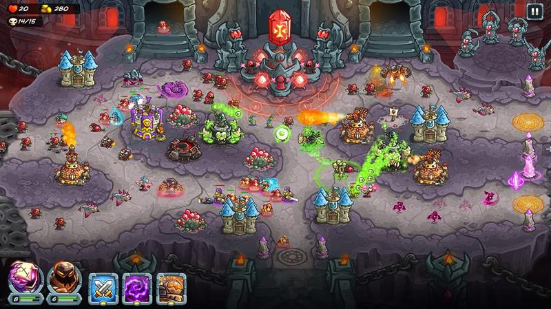 进入钢铁要塞章节,即第8至第10关,敌人转变为机械类型,这类单位具备魔法免疫特性,因此炮塔在此阶段成为输出主力,搭配合理位置可大幅提升通关效率。暗影山脉章节涵盖第11至第14关,大量出现隐身敌人,需依赖兵营召唤士兵进行视野探测与拦截,对防御部署的预判能力提出更高要求。