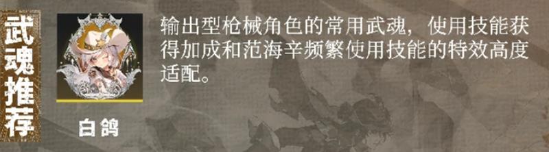 白鸽武魂在枪械类输出角色中具有极高适配度,尤其与范海辛形成经典搭配。其效果为普攻或魂技命中后,接下来2秒内的下一次普攻或魂技伤害提升10%,最多可叠加10层。这种滚雪球式的增伤模式非常适合持续输出型枪手,不仅能强化单体爆发,也能在群战中逐步叠加至满层,带来可观的伤害增幅。