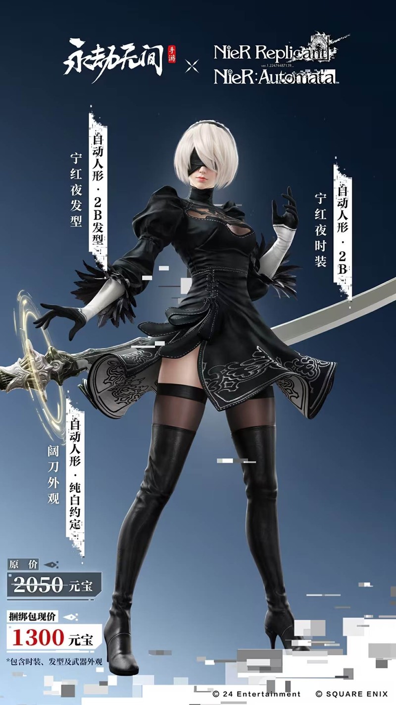 宁红夜的粉丝们有福啦!全新的【2B捆绑包】上线,内含宁红夜极品时装【自动人形·2B】,穿上它,宁红夜仿佛从《尼尔:自动人形》中走出的战士,帅气逼人;还有与之搭配的宁红夜优品发型【自动人形·2B发型】,完美契合整体造型。