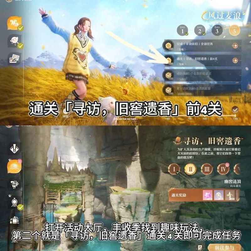 打开活动大厅,丰收季找到趣味玩法,第二个就是「寻访,旧窖遗香」通关 4 关即可完成任务