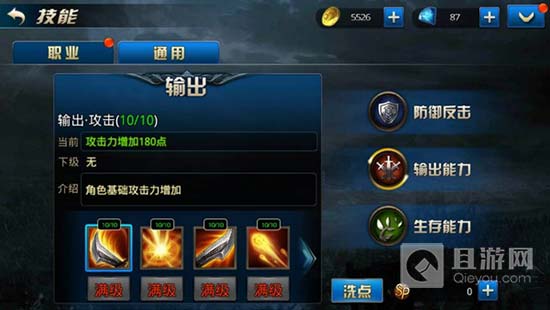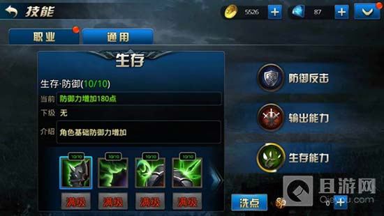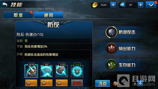 通用技能分别为防御反击、输出能力、生存能力