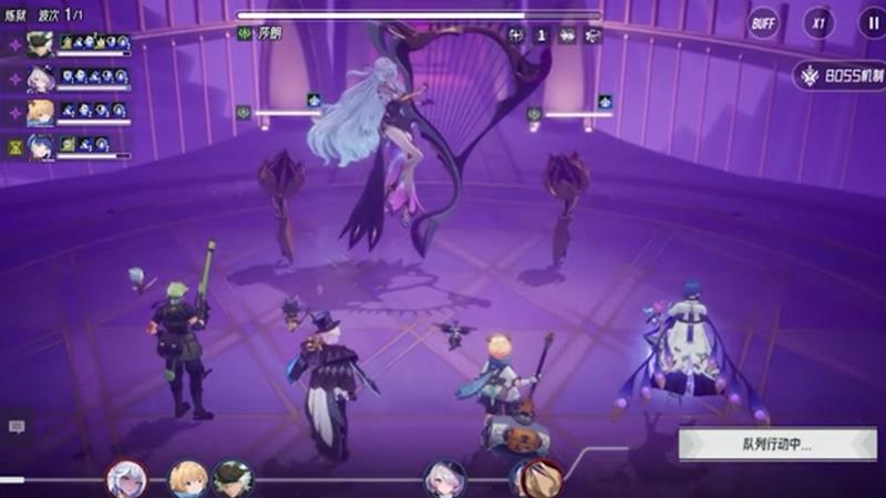莎朗作为另一位日常副本中的常驻boss,其机制相较阿斯塔蒂更为复杂。她的技能小步舞曲可对全体敌人造成350%伤害,并提升自身行动条与攻击速度。前奏曲则能对全体造成500%伤害,同时有75%概率击退主目标40%行动进度,并立即结算其身上所有持续伤害。这类技能组合让她在节奏掌控上极具优势,容易打乱玩家的出手顺序。