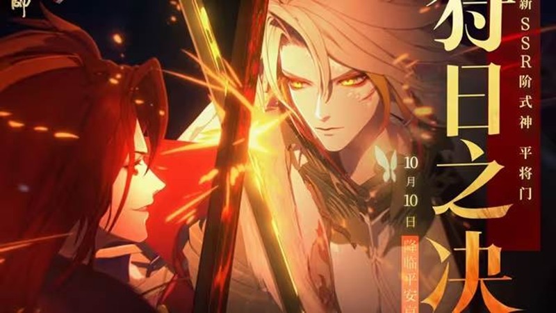 全新SSR阶式神平将门(CV:古川慎/夏浚恺)降临平安京,他将在“狩日之决”版本中扮演重要角色。