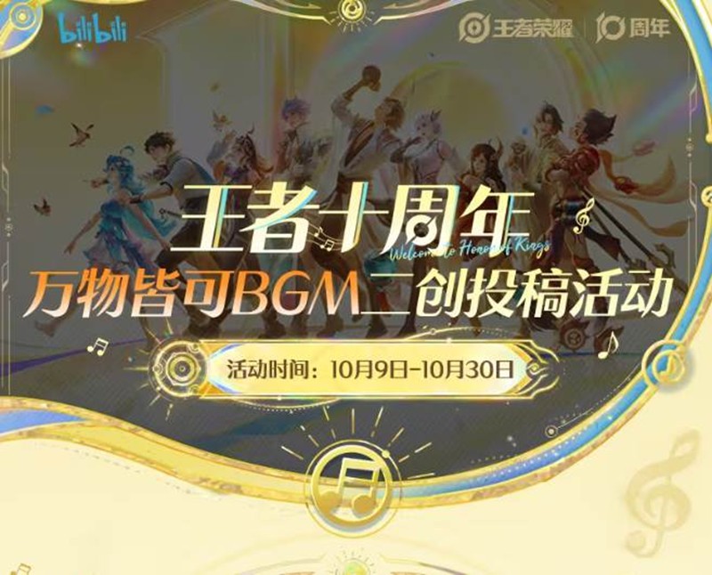 为庆祝王者荣耀十周年,官方携手Bilibili共同推出了“万物皆可BGM”二创投稿活动。本次活动旨在邀请广大玩家发挥创意,用音乐和视频创作出属于自己的BGM记忆,共同庆祝这一重要时刻。活动将从10月9日持续至10月30日,期间玩家可以自由选择话题和赛道进行创作。