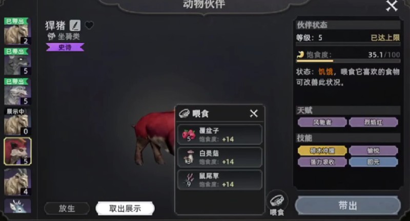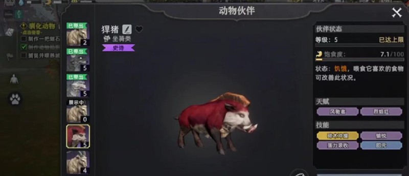 捕捉成功后便进入驯服阶段。在驯服过程中,玩家需注意控制野猪的血量,避免将其击杀,同时要灵活走位,躲避其频繁发起的冲撞攻击。野猪在被驯服期间会不断移动,正面撞击伤害较高,因此保持侧向或后方跟随是较为安全的策略。部分野猪存在变异个体,这类野猪体型更大、属性更强,驯服难度也相应提升,适合有一定经验的玩家挑战。