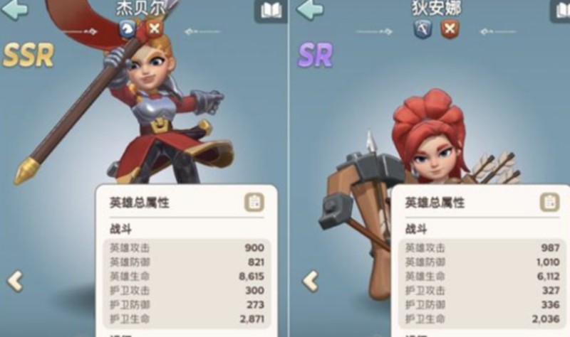 在阵容搭配方面,推荐使用狄安娜配合杰贝尔及两名免费骑士组成主力阵容。杰贝尔是游戏中可免费获取的SSR级英雄,具备821防御与900攻击的均衡属性。其远征特性可为骑兵单位提供72%的攻击力加成和4%的生命值提升,满级后还能通过红色意志机制增加30%伤害,并强化守城部队的杀伤力。由杰贝尔率领骑兵在前排吸收伤害并撕开敌方防线,狄安娜则在后方进行高效输出,形成攻守兼备的战组合。