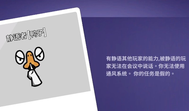 坏人阵营以鸭子为核心,他们的任务是破坏设施、击杀好人并制造混乱。专业杀手是鸭子阵营中的高威胁角色,其击杀行为不会触发加拿大鹅的自动报告机制,只有靠近尸体才能发现,极大增强了隐蔽性。间谍则能在会议投票阶段窥探他人身份,为鸭子阵营提供情报支持。静音鸭子具备特殊干扰能力,可在发言环节使某位玩家无法开口,有效阻止关键信息的传递,打乱好人阵营的推理节奏。