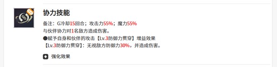 该技能需与其他角色协力释放,对单一敌人造成55%攻击力的基础伤害。协同成功后,凡妮莎与协作者均可获得防御贯穿增益,无视敌方30%防御力,并附加额外伤害。这一机制使得她在双人联动战术中表现亮眼,尤其适合与高攻低破防的角色搭配,提升整体输出穿透力。