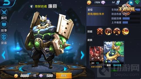 技能点评:被动技能所带来的免伤效果能让廉颇在战斗中可以抵挡更多的伤害,霸体则能够让廉颇出入自由,如果在无法躲避控制技能的时候,主动释放技能抵抗控制。