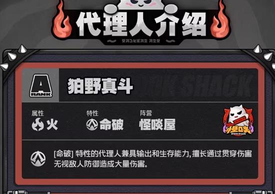 狛野真斗定位为主力输出和生存能力兼备的输出型代理人。他能够在战场上持续输出高额伤害,同时通过技能保证自身的生存能力。