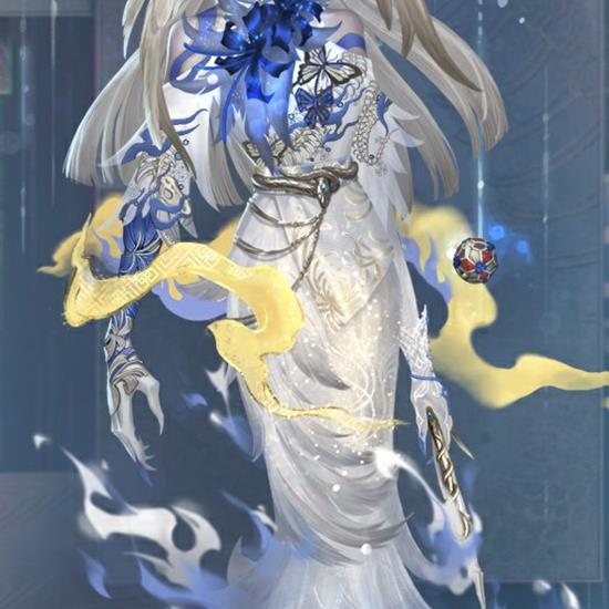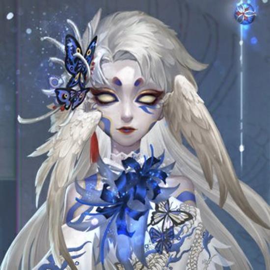 轻盈的蝴蝶落在她发鬓,洁白的耳羽自由地舒展,蓝色的妆线在苍白的面庞上蔓延,为她的面容增添了几分妖异。银蛇装饰环绕腰间,为这份危险带来一丝优雅。裙摆在火焰的灼烧中破碎,露出属于异族的利爪,她将不再逃避,面对真实的自我。