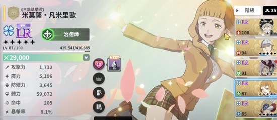 在协力技能方面,米莫萨不仅能为队友提供攻击属性和暴击率的增益,还能附带少量生命回复效果。虽然治疗量不如其主技能显著,但多重增益叠加下,整体辅助价值进一步提升。同时,使用协力技能后,米莫萨自身的输出能力也会得到一定强化,使其在非治疗回合也能贡献可观伤害。配合特定角色激活羁绊技能后,团队的持续作战能力将更加稳定,尤其适合搭配高爆发但生存较弱的输出角色。