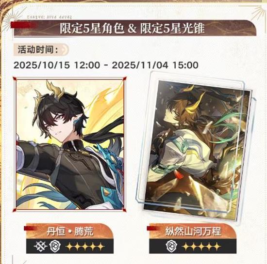 2025/11/04 15:00在活动期间,玩家可以通过跃迁系统获得上述限定角色和光锥,且这些角色和光锥的跃迁成功概率将限时提升,为玩家提供了一个获取心仪角色和光锥的绝佳机会。