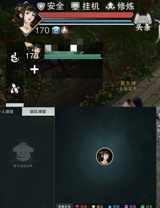 带奖励号少吃:带亲密度高,有侠缘/结义/师徒/帮派的好友等级越高buff越高哦!