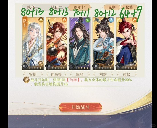 思路:陈登打火机,利用安期黄金剑+孙权叠火伤,使孙尚香输出最大化。尽量第一回合干掉