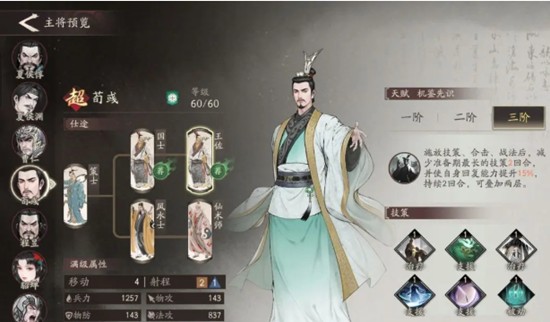 司马懿在队伍中担任主力法系输出,技能覆盖范围广,且能施加中毒、灼烧等持续性负面状态,使敌方单位在多回合内持续掉血,形成“叠毒”压制效果。同时,他具备一定的减速控制能力,可有效限制敌方前排走位,为己方创造输出窗口。荀彧则补足了全队的群体法伤短板,其技能不仅可造成大范围法术伤害,还拥有减少技能冷却的强力机制,在释放合击技后能为准备时间最长的技能减少两回合CD,大幅提升技能循环效率。