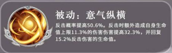 被动技能意气纵横进一步强化了袁绍的反击体系。每当触发反击时,其反击概率提升50%,并额外造成相当于生命上限11%的伤害,且该伤害还能享受32%的加成。更关键的是,反击所造成的伤害会转化为自身生命恢复,恢复量为其反击伤害的15%。这意味着袁绍在频繁受到攻击的情况下,反而能通过反击实现“越打越硬”的效果,尤其在面对高攻速或普攻型敌人时,回复效率显著提升。