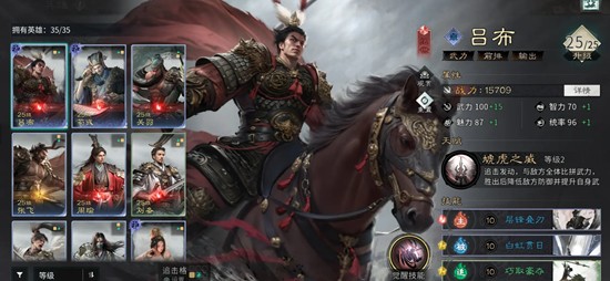 吕布与郭嘉是孙权身边最理想的两位副将人选。吕布作为武力输出代表,拥有极高的力量属性与单体爆发能力,其技能可在造成基础伤害后触发追击效果,形成连续打击。尽管在该阵容中需牺牲其追击格位以适应整体布局,但凭借技能冷却快、触发频率高的特点,依然能保持稳定的输出节奏。而郭嘉则作为谋略输出与支援型武将,凭借智力压制和稳定谋略伤害为团队提供远程输出支持。
