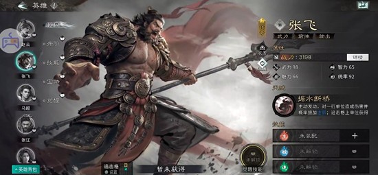 张飞作为前排坦克,在蜀国阵容中承担着主要的承伤与控制职责。他基础生命值较高,防御成长优秀,配合装备和升星后能成为真正的战场壁垒。其技能包含嘲讽效果,可强制敌方攻击自己,从而保护后排输出单位。此外,张飞还具备短时间控制敌人的能力,能够在关键时刻打断对手技能释放。随着星级提升,他的生存能力和控制时长都会显著增强,是构建防守反击流派的核心人选。