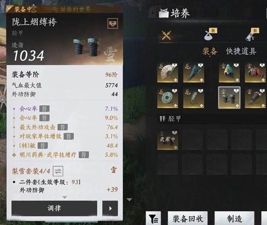 面板:三率只要会心黄字75,其他会意精准通通属于无效词条。因为奶奶默认满精准不会丢失也不会触发会意。达成后优先追求大小外和玩家增效、伞扇增效、大小牵丝 。定音左边外功穿透右边扇武学加成或者治疗(重击)加成。不要任何外系属攻,吃不到一点加成。