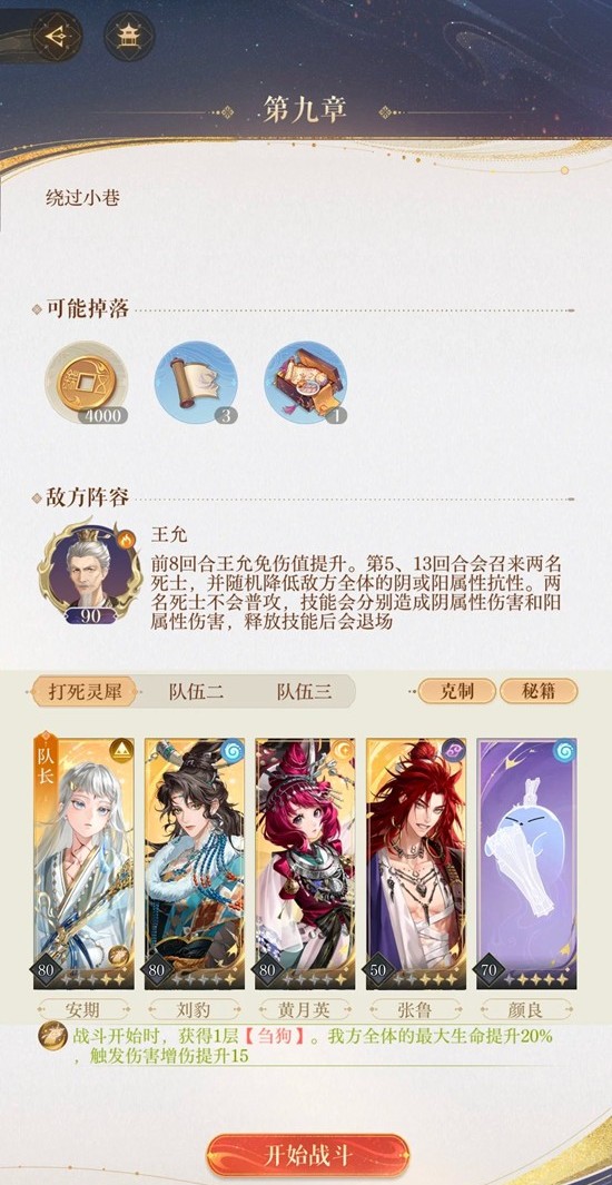 以上就是如鸢主线第九章9-13王允无粲邈郃ee香怎么打攻略的全部内容了,更多游戏资讯,攻略内容敬请关注切游网,您的支持是我们努力的动力!